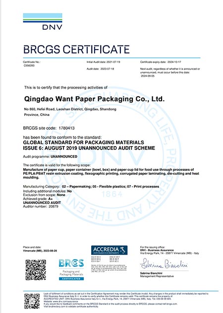 Meie ettevõtte peamised tooted on läbinud rahvusvahelise Sertifikaadid, sealhulgas BRC, BPI, FSC, DIN, PHA Marine Biolagunev sertifikaat , ABA kodukompostitav ja SedEx ning kohtuge tipptasemel toitlustuse sertifitseerimise ja testimisnõuded Ettevõtted tarnijatele.